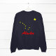 Grande mergulhador e estrela do norte da bandeira do Alasca com o Alasca vermelho em texto embaixo.