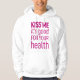 Declare as suas necessidades com uma dose de charme na nossa "Beije-me que é bom para a sua saúde". A mensagem ousada, mas simples, é reproduzida em uma fonte rosa, limpa e atraente que adiciona um toque de doçura e confiança ao seu estilo. É a camisa perfeita para aqueles que acreditam que um beijo é o remédio mais doce e uma maneira simples e na moda de mostrar uma personalidade divertida.