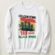 Stylish BLACK HISTORY MONTH sweatshirt, celebrating its centenary from Negro History Week to Black History Month.Design shows red, gold and green brush strokes with four raised black fist silhouettes. Bold typography reads CELEBRATING 100 YEARS BLACK PRIDE in red, yellow and green. Ideal souvenir sweatshirt to wear to celebrate 100 years of Black History Month. Available in other colors.