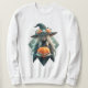 Moletom Bruxa segurando abóbora com Chapéu Floral de Bruxa