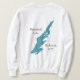 A pair of loons on the lake with a sunset in behind the and cattails on either side of them. On the back is a map of Butterfield Lake Redwood N.Y.