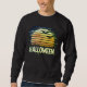 Traga de volta os 70 anos com esta camisa ousada de lua de Halloween. Apresentando uma lua com faixas retrorreflectoras em laranja de abóbora, com morcegos voadores, é a mistura perfeita de vintage e assustadora. Excelente para festas de Halloween, truques ou tratos, ou noites de outono confortáveis.