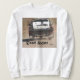 O algodão branco dos homens longo-sleeved a camisola, com a foto na parte dianteira da equitação do cão na parte de trás de um camionete, e as palavras: "Cavaleiro fácil…"