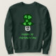 Um cogumelo bonito com pontos do trevo. Está abaixo o dia do St Patrick "feliz" da mensagem na luz - texto verde.