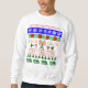 O design nesta camisola é baseado no teste padrão justo do estilo da ilha de muitas imagens para criar um design. Isto é decorado na parte dianteira e na parte traseira. E, é na parte traseira que você pode personalizar este com um sinal de chamada, um nome, ou o que quer que você quer. A camisa é decorada com uma fileira de bastões de doces, flocos de neve, símbolos do diagrama esquemático elétrico, uma torre de rádio do Natal, papai noel e Rudolph, a qualidade de cópia, o Feliz Natal, as árvores, santamente e na parte inferior são uma fileira do que eu chamo do "um equipamento do presunto Natal." É divertimento e é festivo e diz o rádio amador e o Natal por todo o lado nele. Este design é mostrado em uma camisola, mas se você a quer em algo mais fresco (Natal em Florida este ano?) você pode comprá-lo em um t-shirt. E, embora eu esteja mostrando este em um homem, isto pode ser comprado na roupa das mulheres também. Faça a isto seu vestuário tradicional do feriado na festa de Natal anual do seu clube do radioamador. Ou, em sua foto de família!
