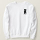 Uma camisola longa da luva com um impressão de um laboratório preto no direito superior dianteiro.