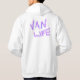 Camper van hoody com o slogan da van life. Magenta colorida e padrão azul. Camper estilo T3. Ideal para pessoas obcecadas da camper van