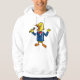 Um pássaro que assina muito bem esta design vai fazer você se apaixonar por este pássaro. O pássaro amarelo está vestido com uma roupa azul e segurando um microfone no qual ele está entrando. A design é muito bem feita. Este pássaro cantor parece excelente neste significa capuz. Perfeito para si mesmo ou como presente