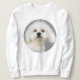 Cãozinho maltês bonito em qualquer vestuário para mulheres e homens e crianças
