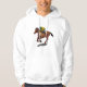 Corrida de cavalos é um esporte tão maravilhoso para se assistir enquanto esses animais magníficos correm pela pista. Esta design é de uma corrida de cavalos e parece soberba. O cavalo está correndo junto com o jockey enrolado nas costas. Este design de corridas de cavalos parece excelente neste significa capuz. Perfeito para si mesmo ou como presente