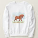 Um cavalo sorrado tem um casaco vermelho de castanheiro e um homem leve e magro. Este design está disponível em uma variedade de cores e marcas de cavalos para que você possa encontrar o que se parece mais com o seu cavalo favorito.