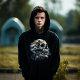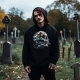Arrancado do crânio. © Desejos do Coração Escuro. Este Hoodie Gótico tem um crânio acorrentado nele com um duplo efeito de exposição no crânio.