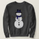 Bring a touch of classic winter charm to your wardrobe with this cheerful snowman sweatshirt. The design features a smiling snowman ina traditional black top hat trimmed with a dark blue sash and matching scarf-simple, timeless, and full of holiday warmth. Printed on a soft, dark grey sweatshirt that's comfortable, warm and perfect for the season. Ideal for festive outings of cozy family moments when paired with the matching womens and family shirts.