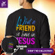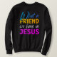 Na moda, colorido O QUE UM AMIGO TEMOS NA camisola JESUS com tipografia ousada. Suéter cristão ideal com citação inspiradora para celebrar o Mês do Patrimônio da Música do Evangelho e comprar para sua família e amigos ao longo do ano. Pocket design na frente com TEXTO PERSONALIZÁVEL que você pode PERSONALIZAR com seu nome ou outro texto. O design principal está atrás. Presentes correspondentes disponíveis.