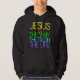 Design, nova e divertida, apresenta "Jesus é o caminho, a verdade, a vida", em múltiplas cores neonatais em uma colagem de caracteres de texto. Um design bonito e jovem para a juventude cristã, adolescentes, mulheres, caras ou qualquer pessoa que queira partilhar a sua fé na roupa. Baseado no verso Bíblia de John 14:6: Jesus respondeu: "Eu sou o caminho e a verdade e a vida. Ninguém vem ao Pai, exceto por mim.