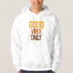 Custom Good Vibes Only Quote Text Work Upload Add Image Logo Clothing Apparel Elegant Modern Template Front Side Design Print Adult Mens White Hoodies / Hoodie / Hooded Sweatshirt Pullover.