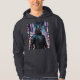 Essa imagem intensa retrata um demônio ameaçador samurai, adornada com uma roupa futurista e escura e uma máscara com olhos e chifres vermelhos brilhantes. Num ambiente urbano iluminado por neon, inspirado pela estética do cyberpunk, o personagem se coloca entre numerosos sinais e símbolos iluminados, sugerindo uma surpreendente paisagem urbana de alta tecnologia.