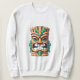 O ameaçador, mas inspirador, rosto de Tiki, enfeitado com entalhes e folhas verdes, é um símbolo de mistério e majestade.
