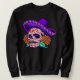 Comemore o Dia dos Mortos este ano com um crânio com uma imagem roxa sombrero dia de los muertos em design colorida em um suéter.
