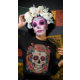 Celebre o espírito vibrante de Dia de los Muertos com essa design encantadora! Um dia alegre do crânio de açúcar morto adorado com um rosa e um buquê generoso de flores coloridas. Perfeito para o Dia dos Mortos ou Festas de Halloween e além. Traga a festa para qualquer ocasião com esta colorida lembrança engraçada mori design.
