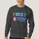 Este design de camiseta de cor arco-íris celebra professores, e lê, "Professor de primeiro grau" numa fonte divertida e amigável para as crianças. Design inclui uma maçã com o dentro número 1. Fácil de personalizar. Escolha o estilo t-shirt ou adicione texto para um toque personalizado. Faz uma excelente de volta para o Presente Escolar.