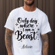 Camiseta personalizada do Halloween para homens. A design apresenta o texto "Somente dia em que sou uma besta" em tipografia em estilo caligráfico preto com estrelas e faíscas. Faz o melhor presente personalizado de Halloween para ele (pode ser qualquer um desde seu pai até seu namorado/marido!). Perfeito para fazê-los sentir-se especiais, aumentar a sua confiança e obter um dom único e infeliz! Temos muito mais designs de Halloween tão elegantes em baixo preto e branco para todos, por favor, vejam a nossa coleção/loja! Feliz Dia das Bruxas!