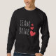 Design incrível com a citação "Equipe da Noiva" e três corações vermelhos. Ótima e divertida ideia de roupa para uma despedida de solteira ou para a festa de casamento.