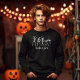 "Celebre o Halloween em estilo com o nosso capuz 'Mover para o Groove'! Um grupo lúgubre de esqueletos dançarinos adiciona um toque de capricho às suas festividades assustadoras."