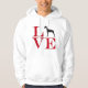 Para o cão e os amantes do Doberman. A palavra "AMOR" está no vermelho e é empilhada com o "O" substituído com uma imagem de um Doberman. Há igualmente uma versão para camisetas coloridas obscuridade.