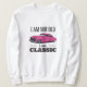 Incrível design de carro vintage que apresenta uma ilustração de um carro clássico com letras retrorreflectoras que diz "Não é antigo Apenas Clássico". Uma combinação perfeita para amantes do estilo do veículo e da safra.