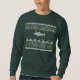 Esta camisa engraçada apresenta um design feito para parecer um suéter feio. A design apresenta um tubarão vestindo um chapéu de Papai Noel mais pequenos peixes, flocos de neve, árvores, canetas doces e barcos, todos em uma ilustração gráfica de aparência tricada. Além disso, é claro que se lê "Sonhar com um Natal Branco Excelente"!