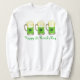A camiseta apresenta uma ilustração original de uma caneca de cerveja verde e espumosa com uma pedra de champanhe, com o HAPPY SAINT PATRICK'S DAY em uma fonte divertida.