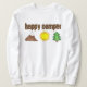 A camisola apresenta uma ilustração original de uma montanha, árvore e sol amarelo, com HAPPY CAMPER em uma fonte divertida. Excelente para seu entusiasta favorito do acampamento!