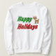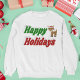 Camisola com feriados felizes em texto verde e vermelho 3D e uma rena. Sweatshirt disponível em várias cores.