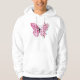 Flower arrangement of pink butterfly with pink Japanese cherry blossoms on white background.