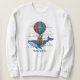 A majestic blue whale gracefully drifting through fluffy white clouds alongside a vibrant, multicolored hot air balloon. This whimsical fantasy artwork symbolizes freedom, imagination, and boundless adventure.