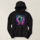 Um adorável aventureiro espacial num capuz num espaço azul e roxo!