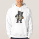 Este capuz gráfico do Halloween apresenta uma ilustração fofa de um animal empalhado de gato com uma parte do seu esqueleto mostrando um aspecto ligeiramente assustador.