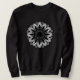 Black geometric sunflower mandala on white tee. Intricate botanical graphic for modern style.