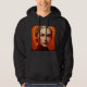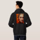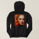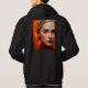 A girl with blue eyes on an orange background, dark black and crimson, photorealistic fantasies, personal iconography, detailed character design, shiny/glossy