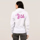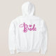 Brilhe no seu grande dia com este capuz de noiva cintilante! Perfeito para festas de noiva, despedidas de solteira ou brunch no dia seguinte. Possui forro de fleece macio e letras glitter que duram. Personalize com nomes ou datas de casamento. [Texto ALT: Capuz "Noiva" com glitter rosa e forro de fleece aconchegante, roupa de festa de noiva personalizável para casamentos e ensaios fotográficos]