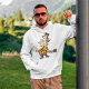 Um homem parecendo uma estrela-de-foguete com violão e vestindo roupas de estrela-de-foguete. Esta design parece realmente eficaz neste Mens Hoodie