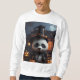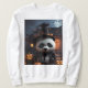 No geral, esta imagem captura a alegria e a relutância de um panda abraçando totalmente o espírito do Halloween em um cenário mágico e luar de floresta.