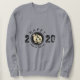 Grande personalização 2020 + Happy + Year do rato Rat + ouro e fruta recortados em papel em um círculo preto. Você pode alterar o texto facilmente (cor, tamanho e posição da fonte) se quiser, clicando no botão Personalizar. Design na cinza, camisa de camisola para homens. Disponível com outros designs de corte de papel para rato. Perfeito para o Ano Novo Chinês do Rato ou Aniversário (nascer do pessoas no Ano do Rato).