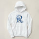 Veja este gráfico de Ravenclaw baseado no feitiço do fazer aguamenti. Esta apresenta uma cortina azul em frente a uma letra gigante "R" com o nome "Ravenclaw" escrito abaixo.