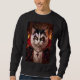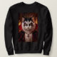 Featuring a fierce cat with dramatic face markings, glowing golden eyes, and a gothic cloak, this artwork blends fantasy, dark art, and kabuki-inspired aesthetics into a commanding visual statement. The fiery background enhances its intense presence, making it impossible to ignore.