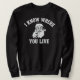 He's making a list, checking it twice... and now he's found your address! This funny Christmas sweatshirt is a playful, slightly dark-humor take on Santa's ability to know everything. Featuring a winking Santa and the phrase "I KNOW WHERE YOU LIVE," it’s perfect for those who enjoy sarcastic and edgy holiday humor.