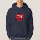 Esta camisola de capuz apresenta um coração vermelho vibrante contendo as letras maiúsculas, brancas e em negrito IN, a abreviação oficial do estado de Indiana, o estado de capuz.