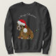 Minha adorável, tema de Natal, imagem de arte mostra um lindo cachorrinho inglês vestindo um chapéu de Papai Noel, e segurando uma corda de luzes em sua boca. Perfeito para o amante dos buldosos. Trabalho de arte por Sally Lannier/Painted Dreams Designs