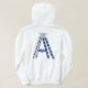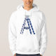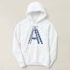 Letra Inicial A feita com imagens de Gemas de Sapphires em Pedra Retangular, Corte de pera e Marquesa, dentro do centro trapezoide cortado e rico cortado Diamantes no grande apfleto marquesa, acentuado com uma flor branca no Topo da letra A. Sapphire é a pedra de origem de setembro. Azul é a cor da garganta Chakra.